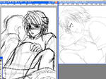 ↓は表紙一部(私が小々田、藤村さんがナッツ)とカラーページの絡みにラフで す…しっぽ…ナッツしっぽおま…色気ねぇええええええええ(笑